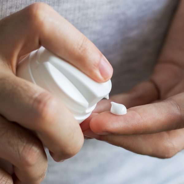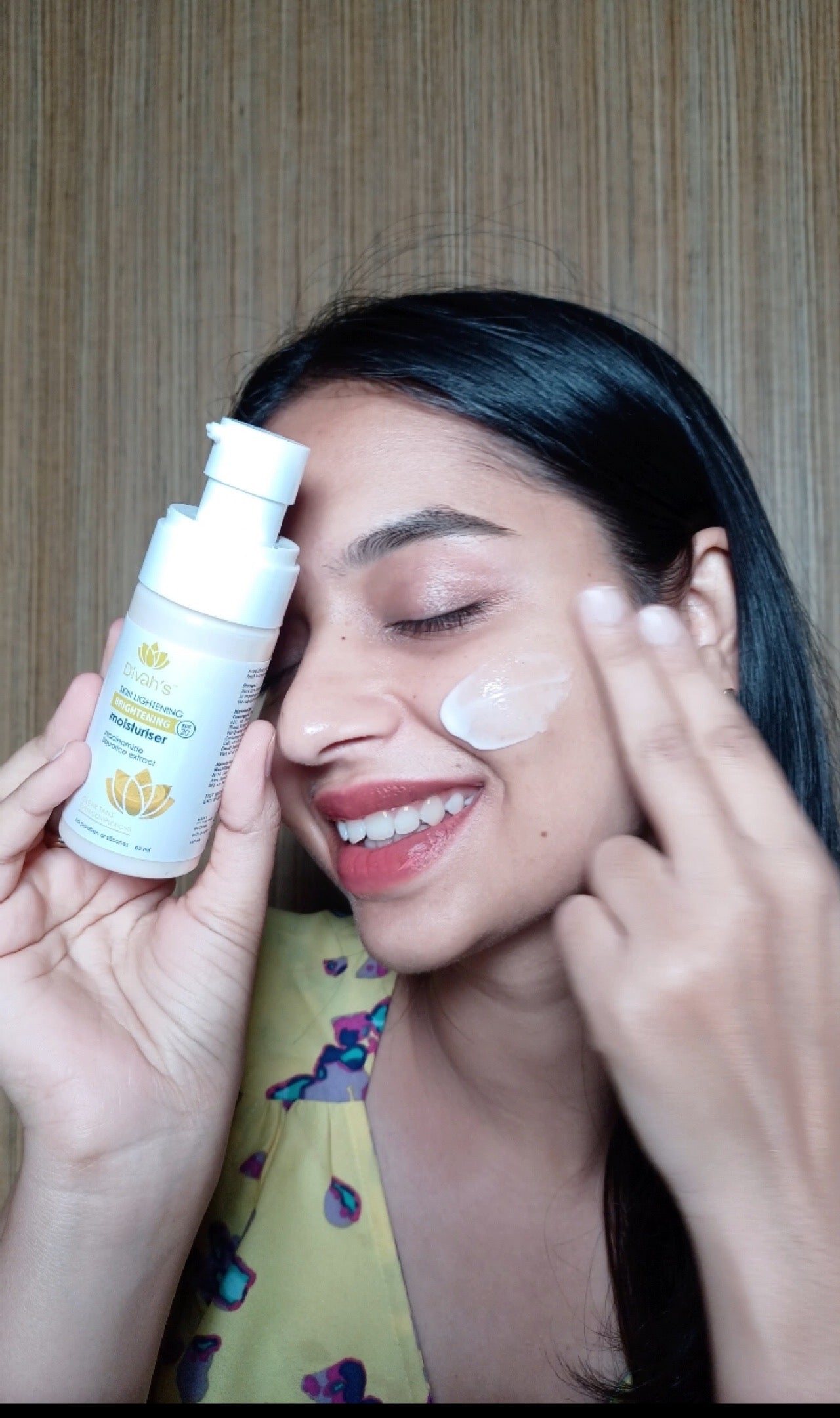 Dispense the desired amount of this Unique Moisturiser onto the palm of your hand.